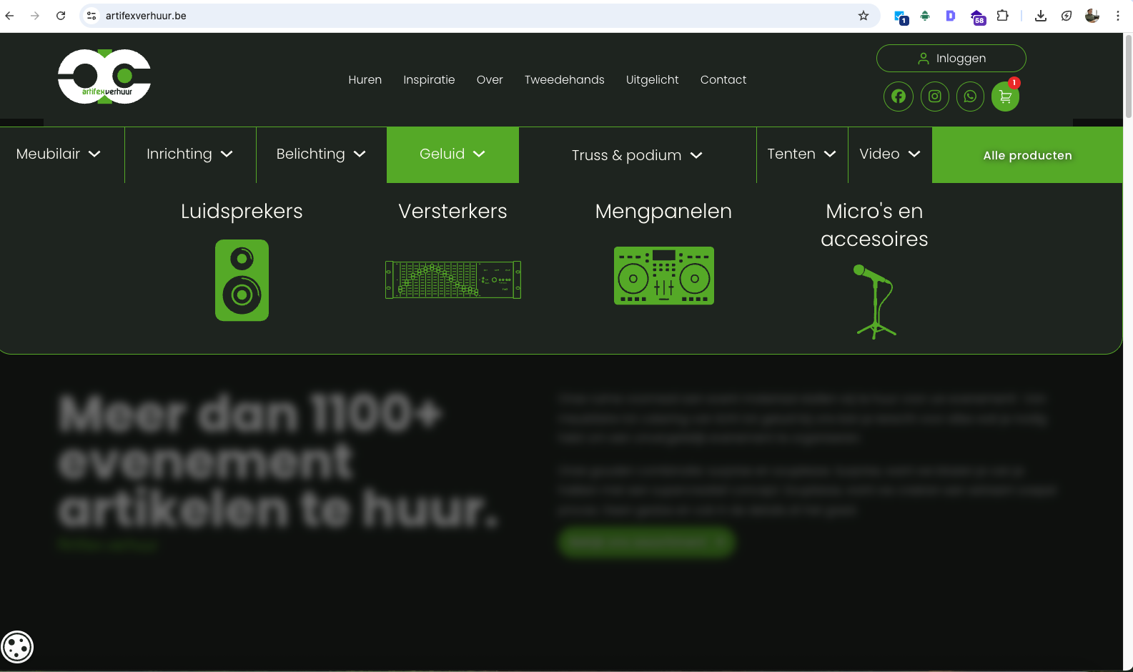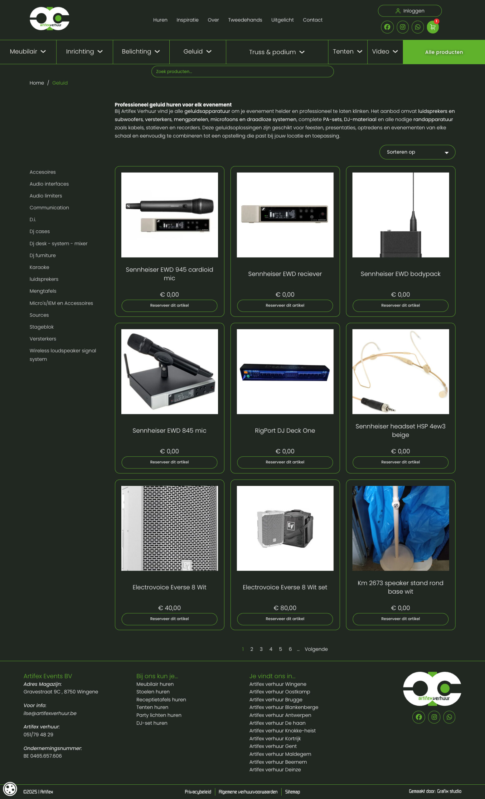 Iemand die bijvoorbeeld alles zoekt voor een trouwfeest, kan vlot navigeren naar geluid om een mengpaneel en bijhorende speakers te huren. De nodige belichting vindt hij vervolgens logisch terug onder de categorie licht. Op die manier leiden we bezoekers op de snelst mogelijke manier doorheen de website.