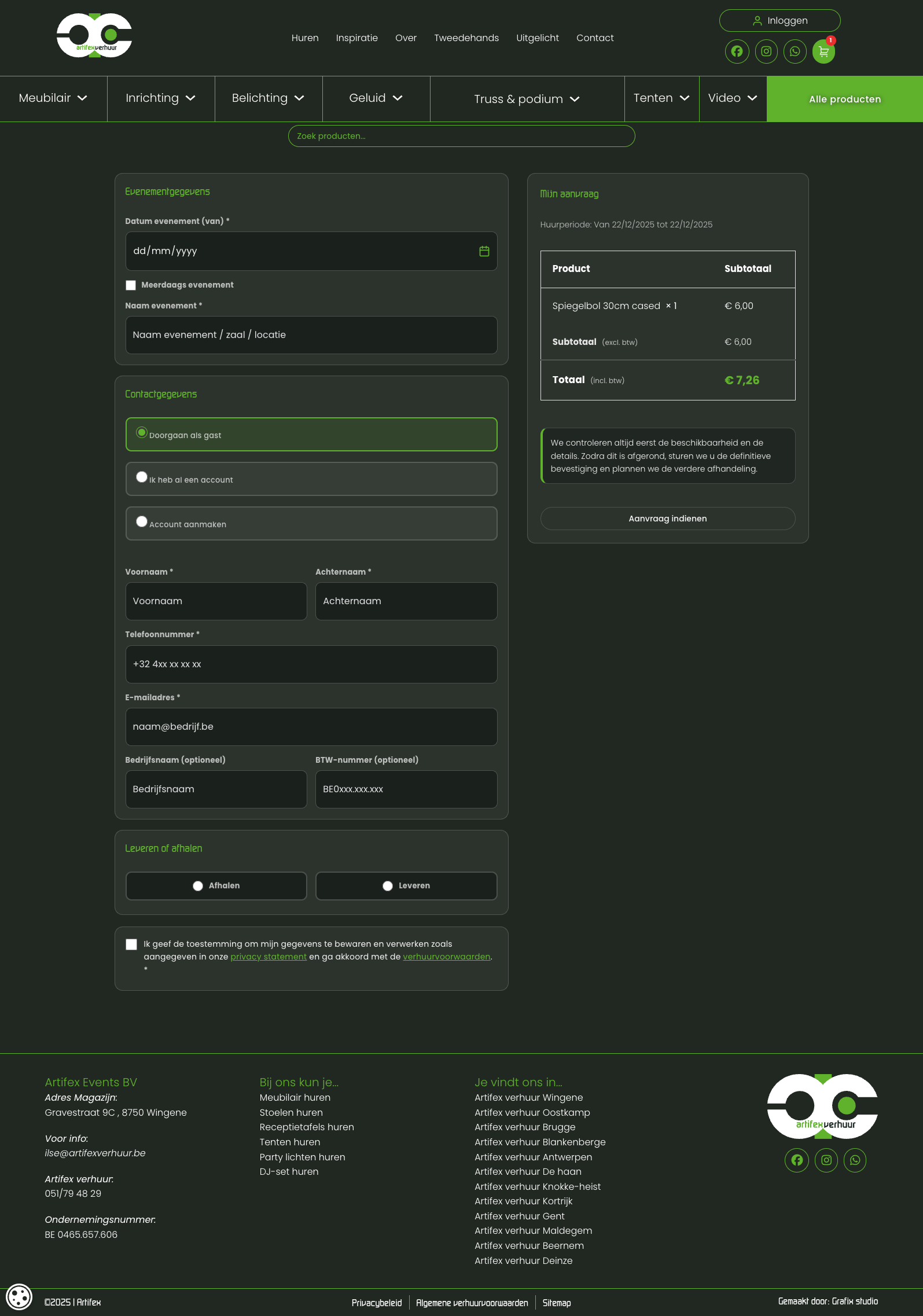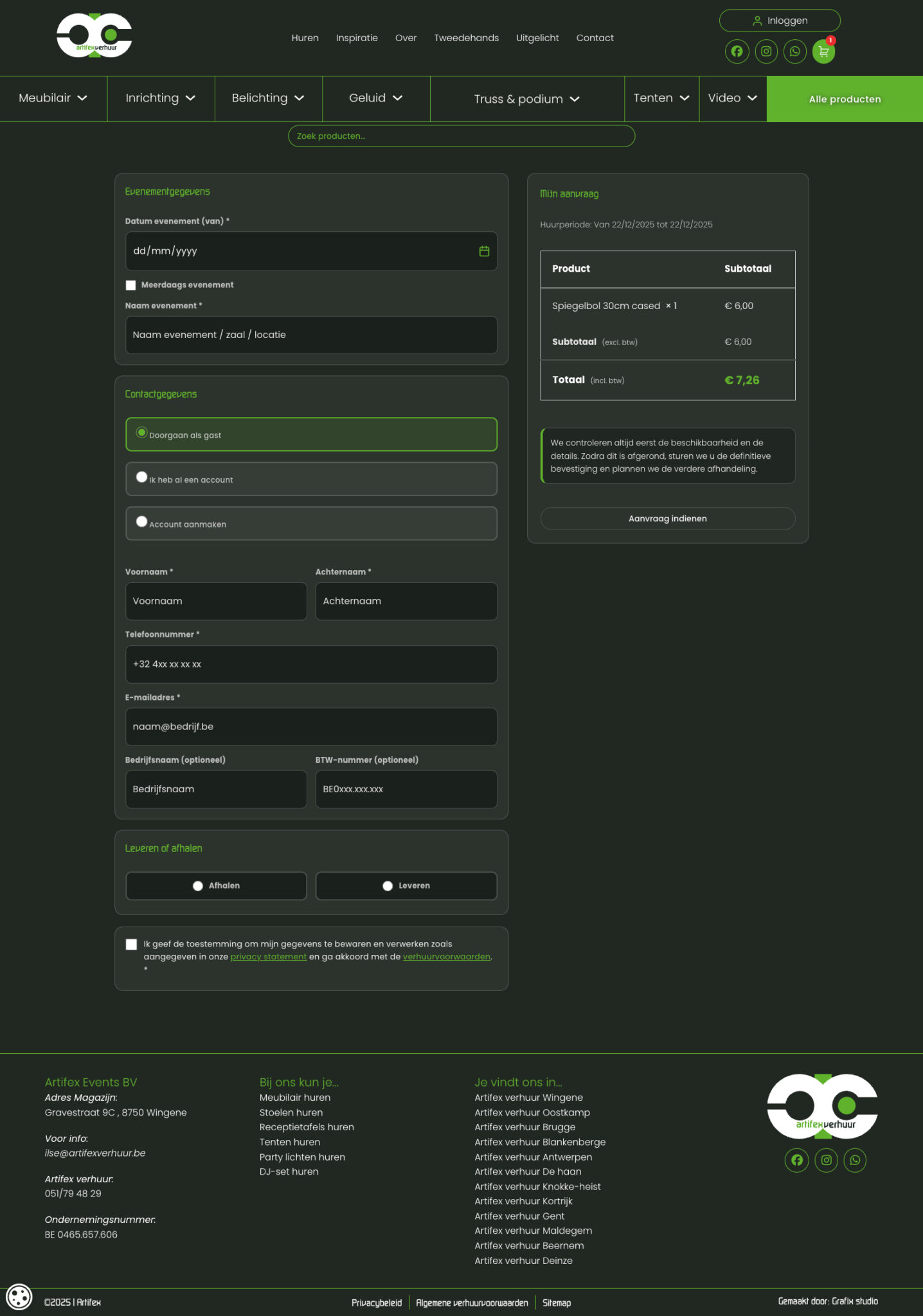 Een knappe webshop gebouwd voor Artifex Events & Verhuur!